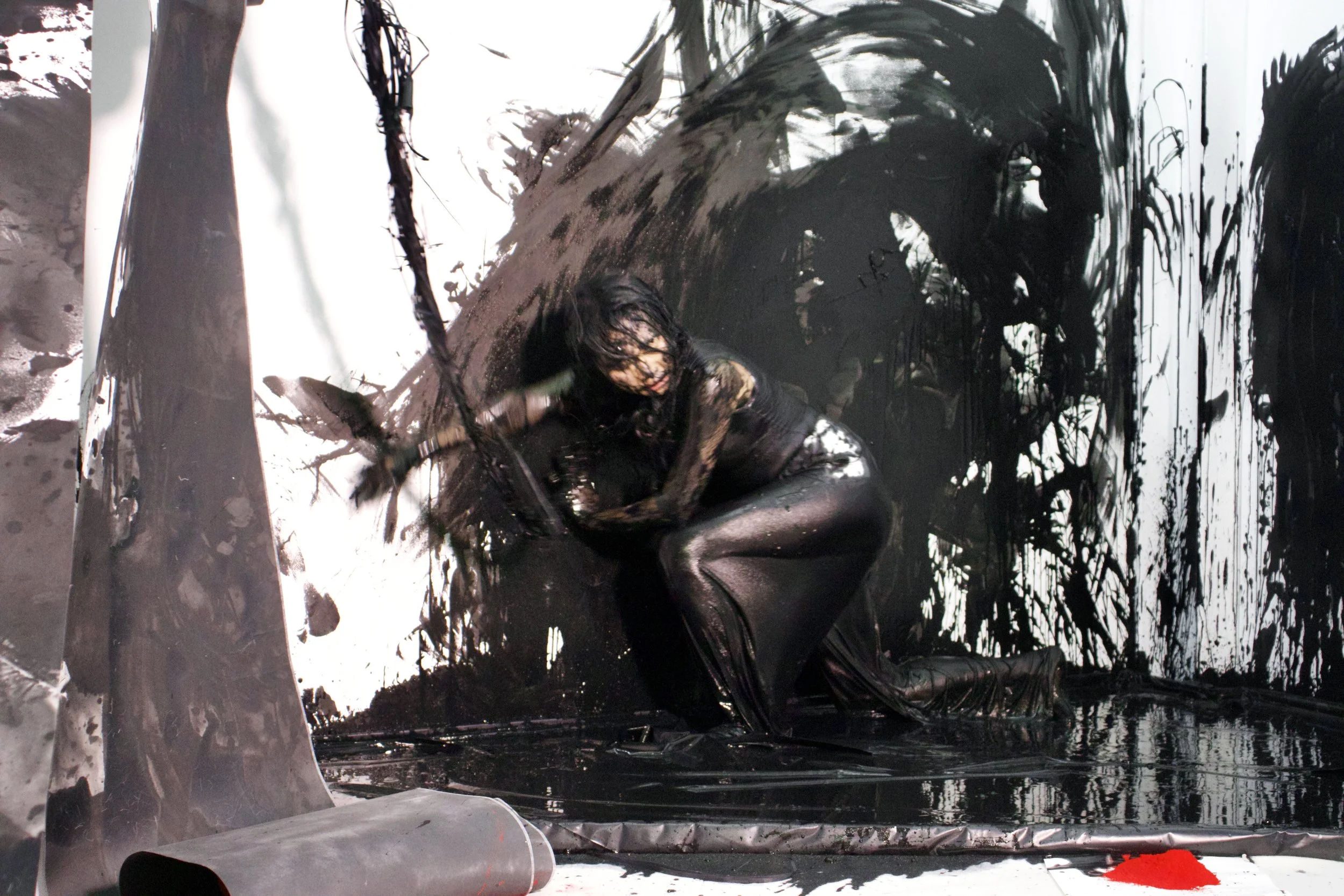 Ink Pool: Liquid ink flows across the floor, its form continuously reshaped by the footsteps of viewers. This instability reflects the fluidity of migrant identity and the ever-evolving nature of self-perception.